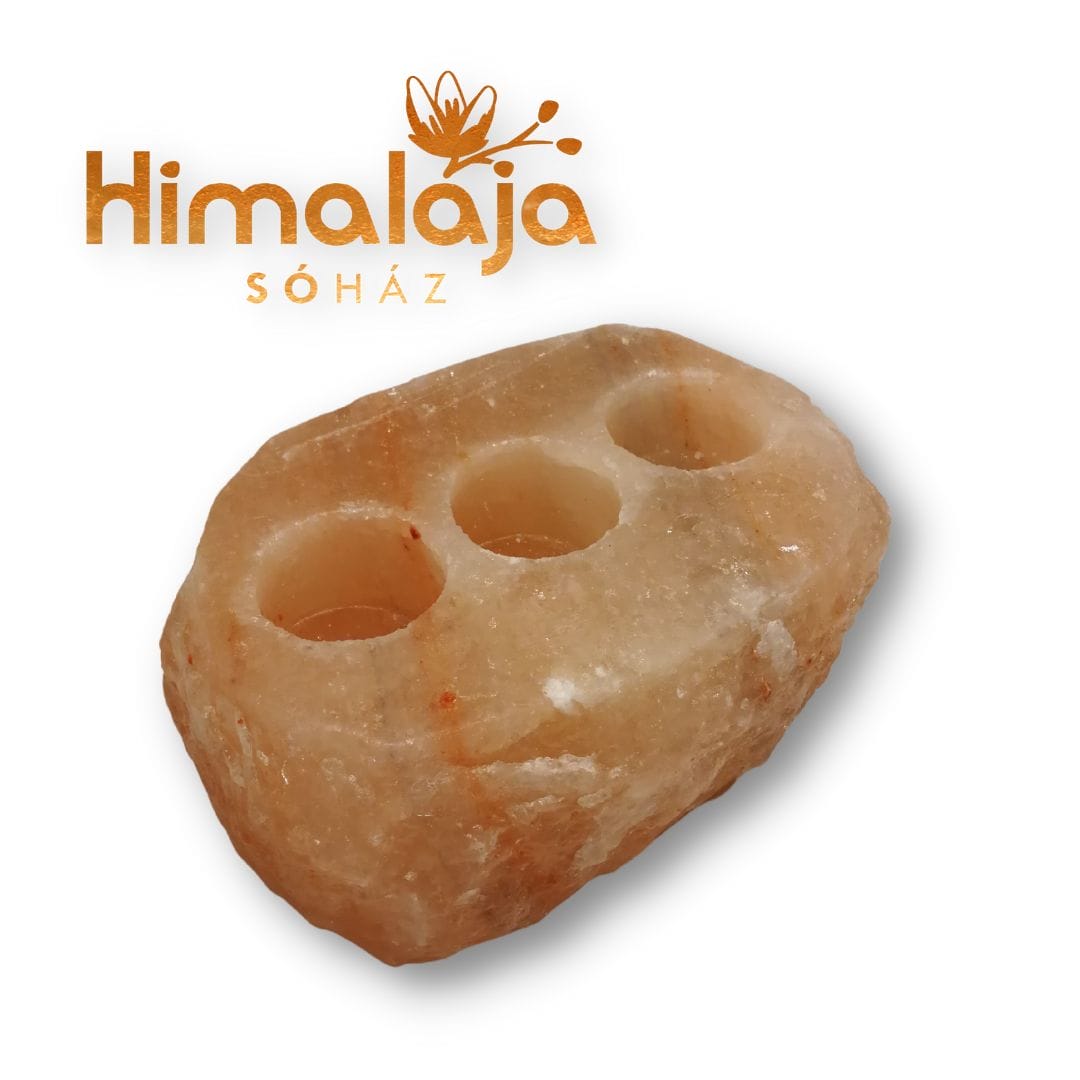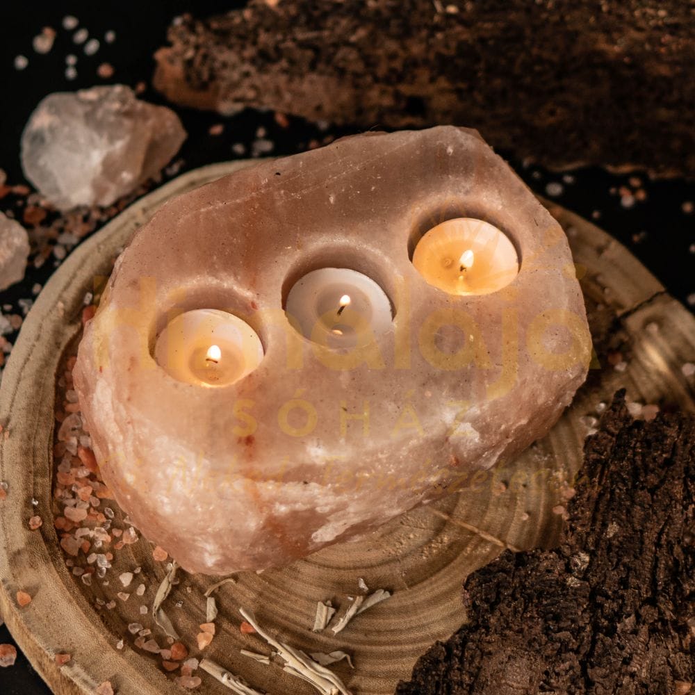 A Himalája Só Mécsestartó megőrizte eredeti rusztikus formáját, a só kristályos alakját – ebben változatban 3 mécses világíthat egyetlen sótömbben.