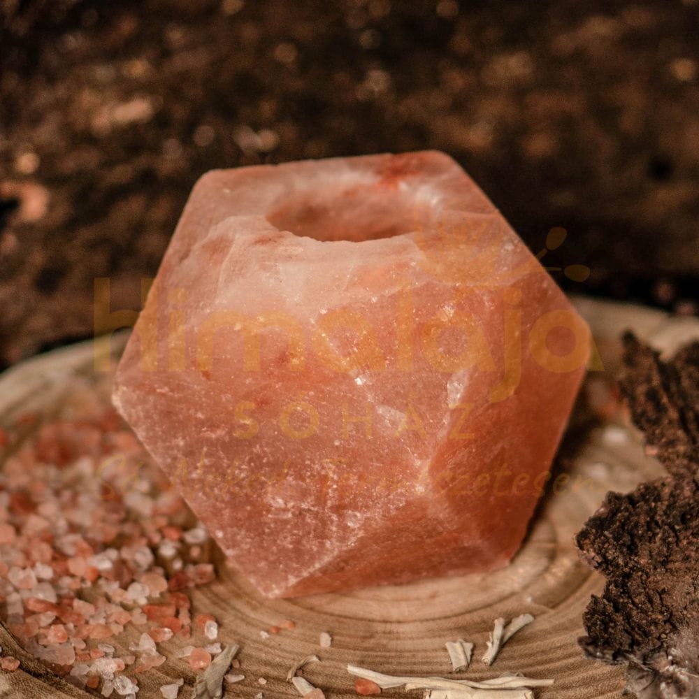 Jellegzetes, GYÉMÁNT formájú rózsaszínű Himalája Sóból készített mécsestartó.