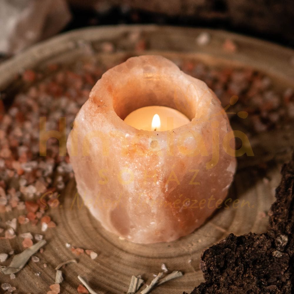 A Himalája Só Mécsestartó megőrizte eredeti rusztikus formáját, a só kristályos alakját.