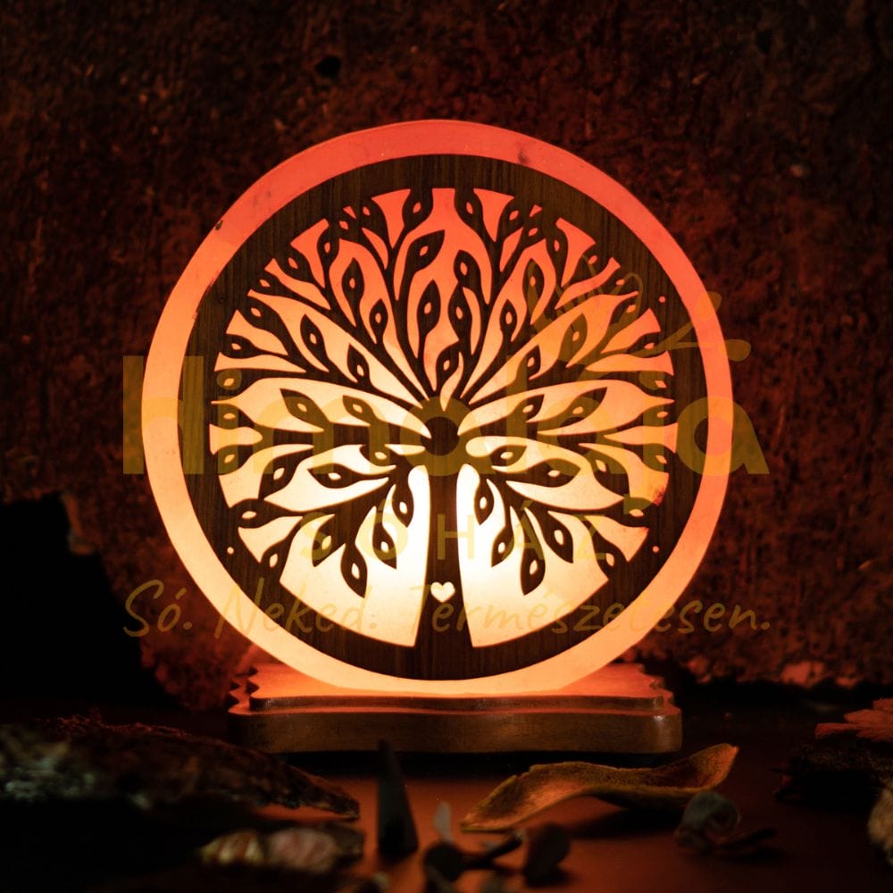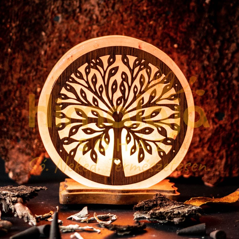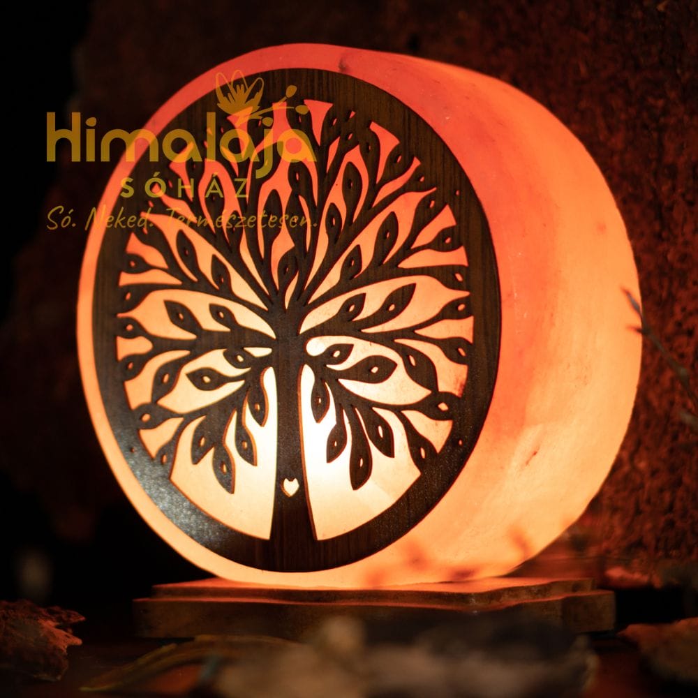 Himalája Sólámpa – ÉLETFA motívumal, korong alakkal – a letisztult vonalak kedvelőinek.