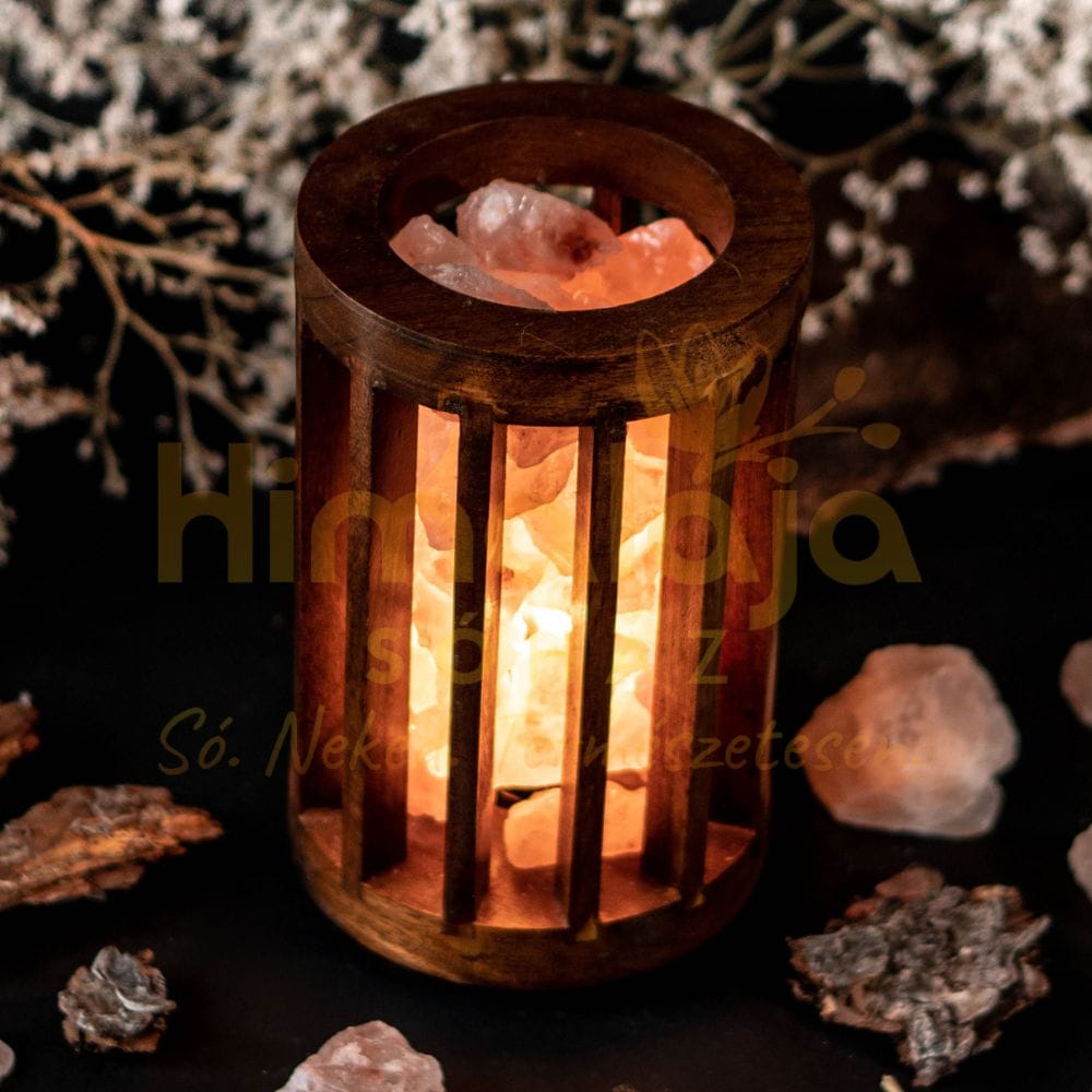 A fából készült HENGER alakú kosárban elhelyezkedő himalája sórögök alulról megvilágítva kellemes hangulattal ajándékozzák meg a sólámpák szerelmeseit.